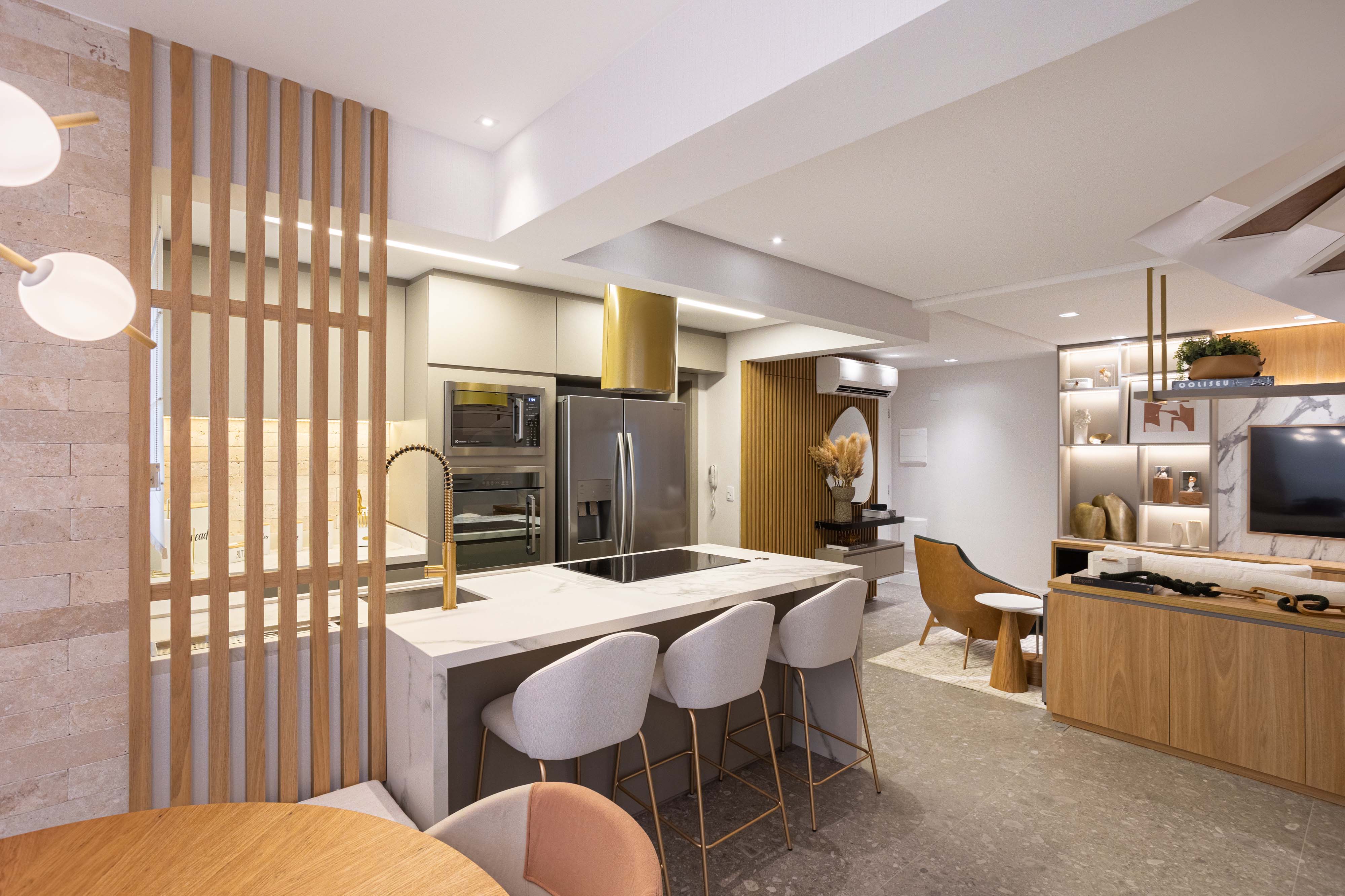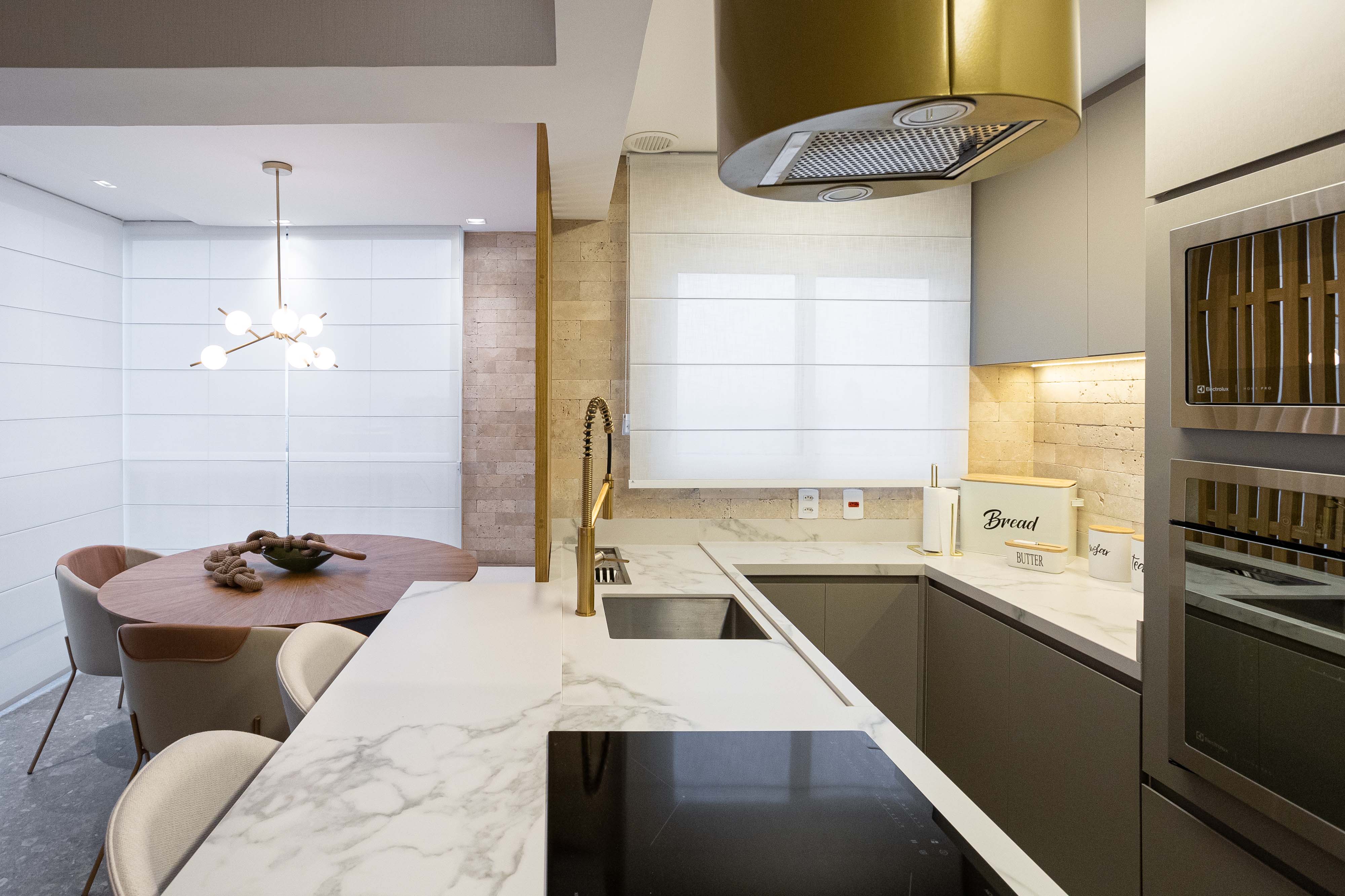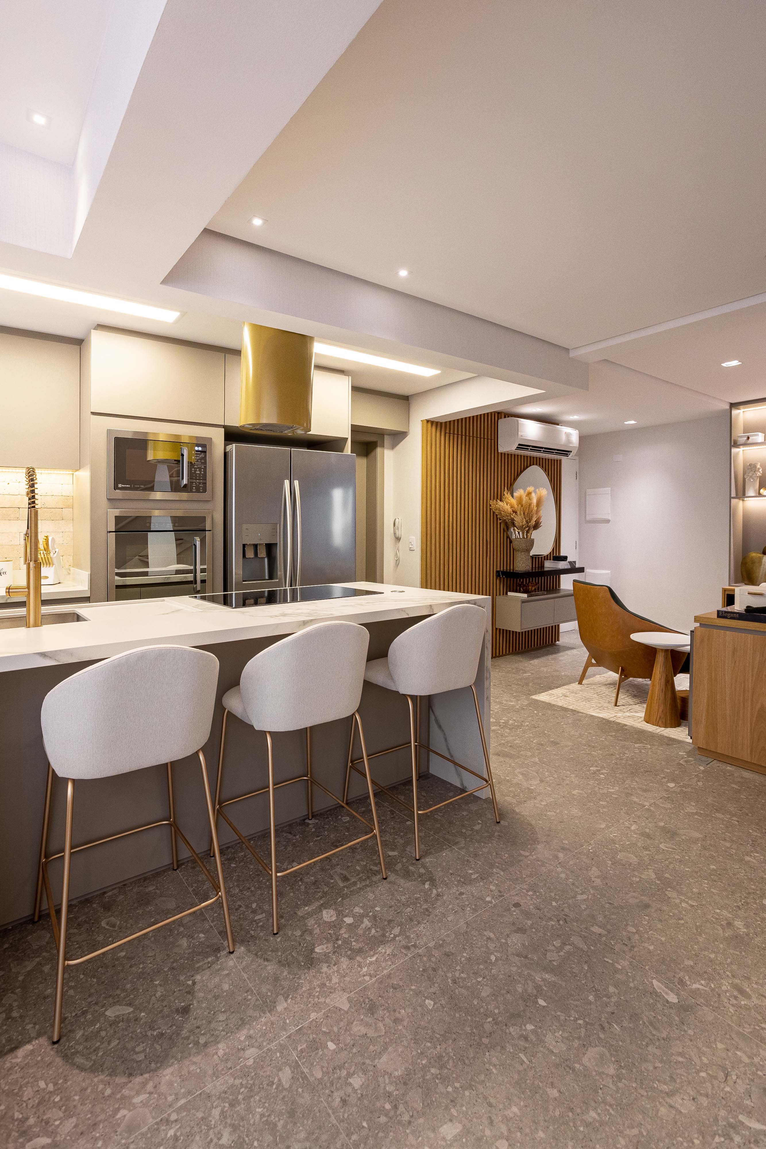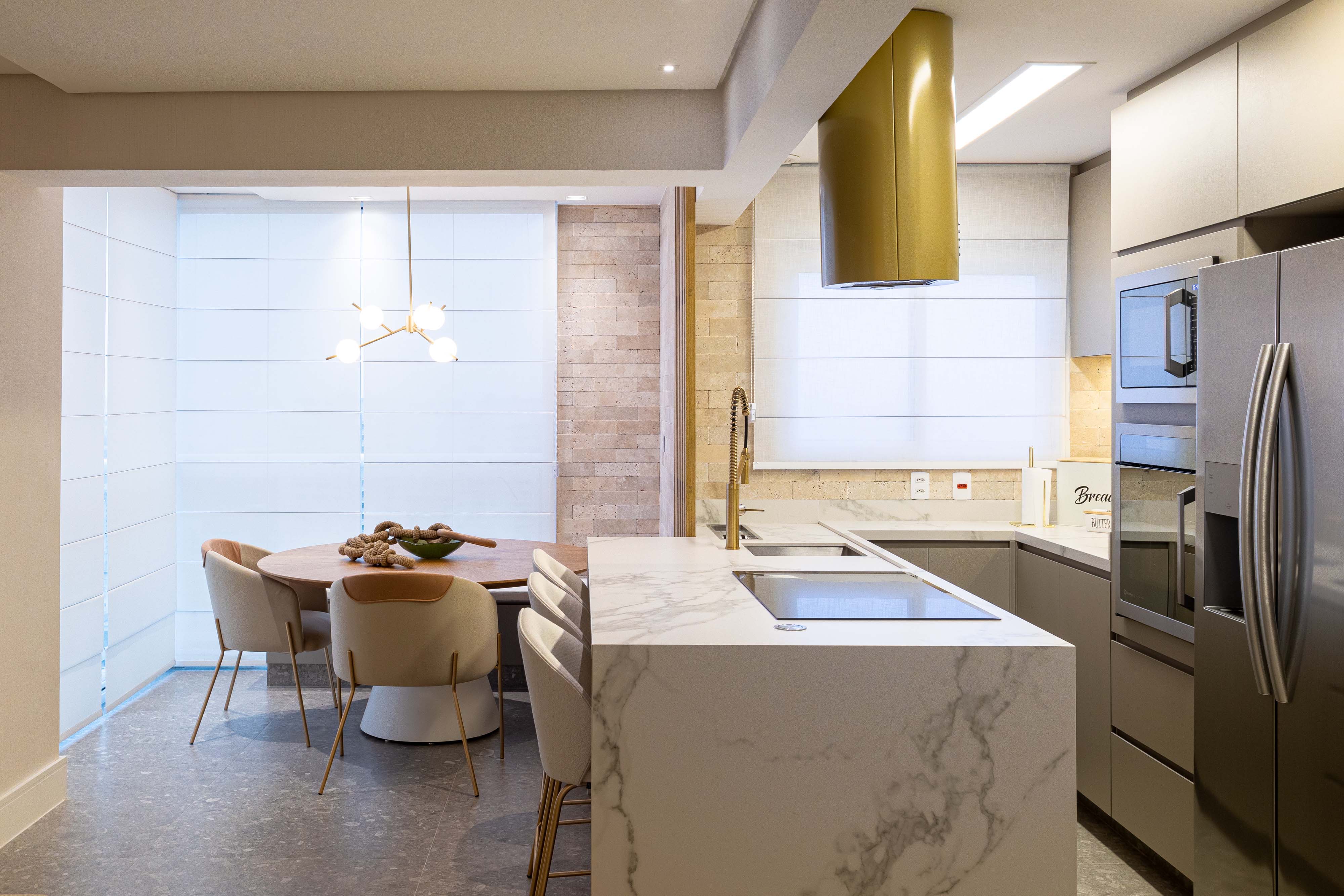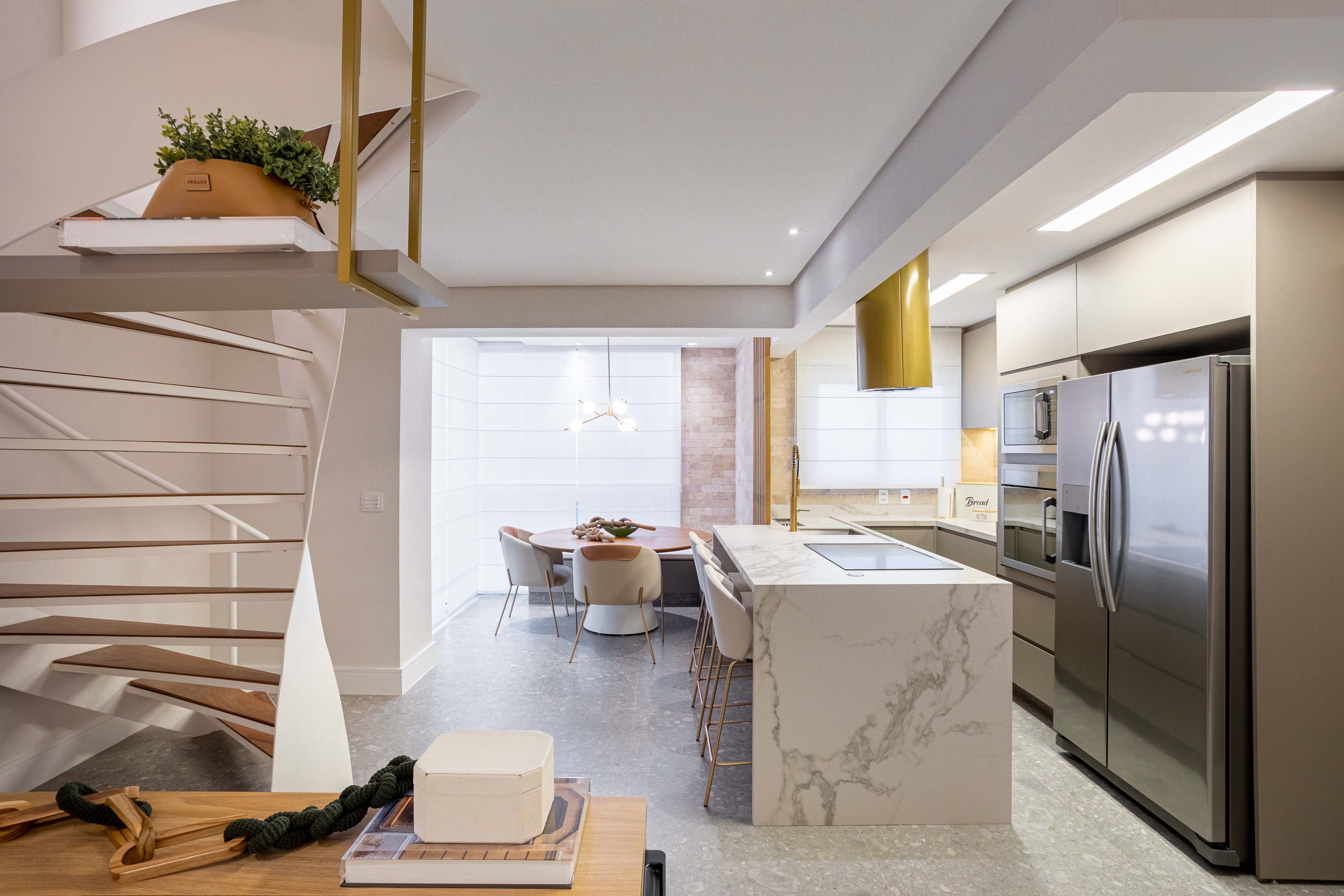 Reformamos esse apartamento moderno com toque clássico que fica na Bela Vista, próximo a Av. Paulista em SP. Essa obra teve 3 meses de duração e reformamos cozinha, área de serviço, salas, área gourmet, escada, banheiros e dormitórios.