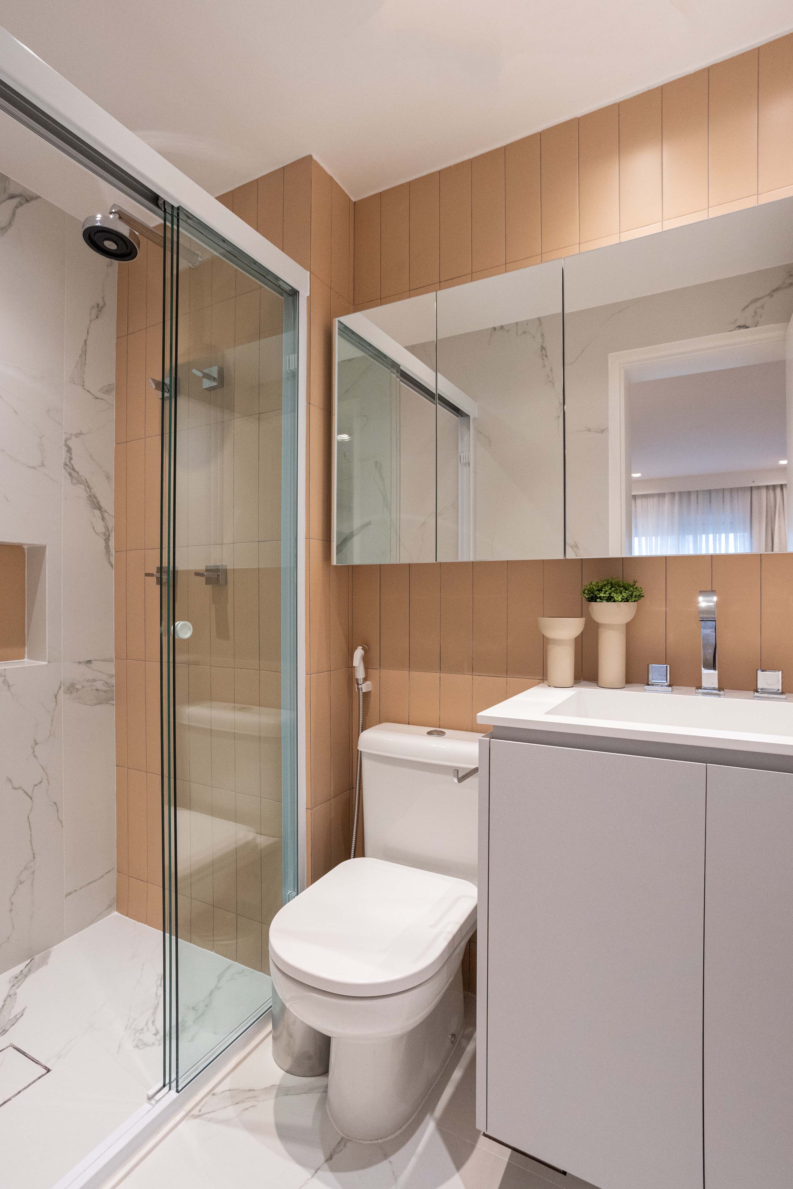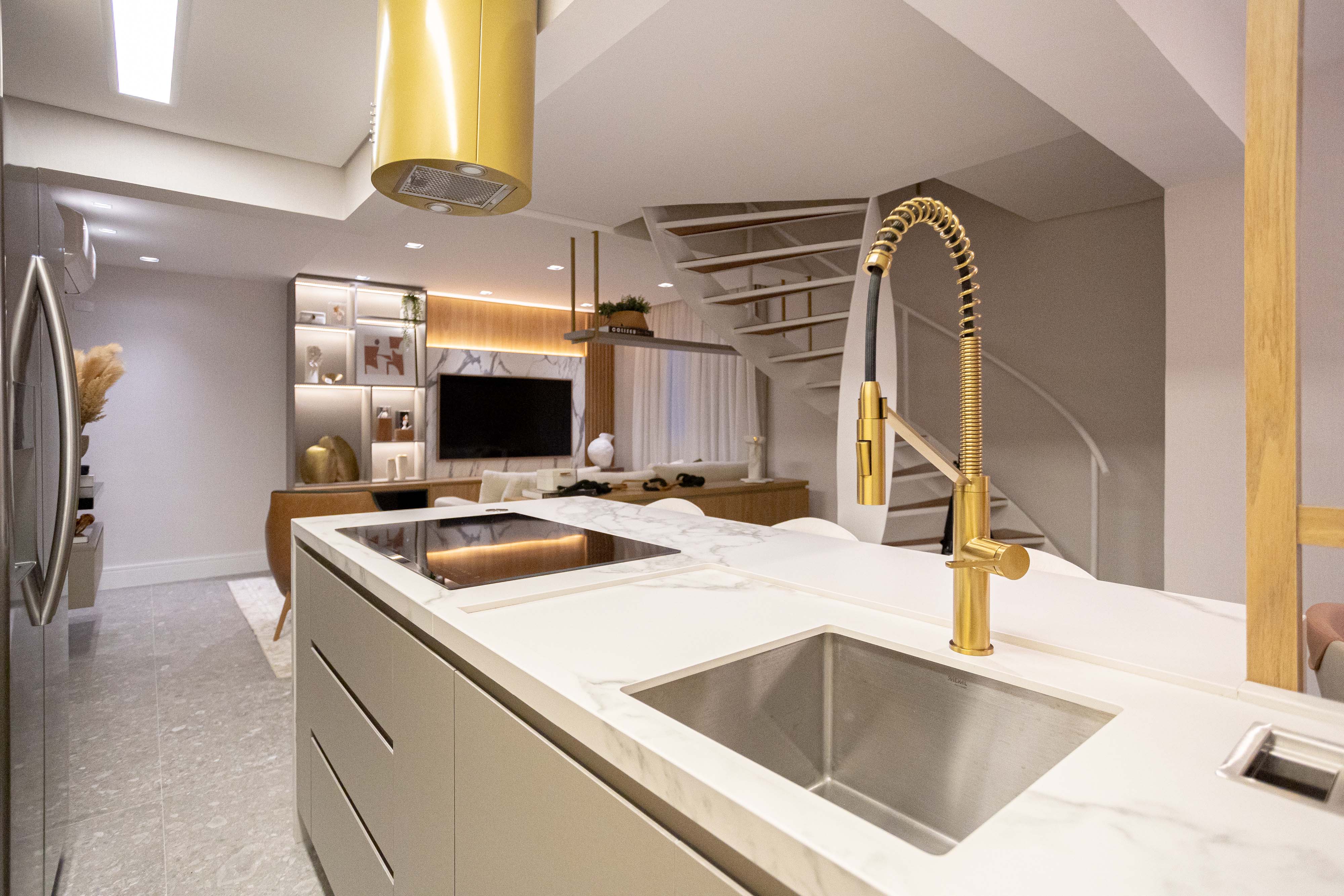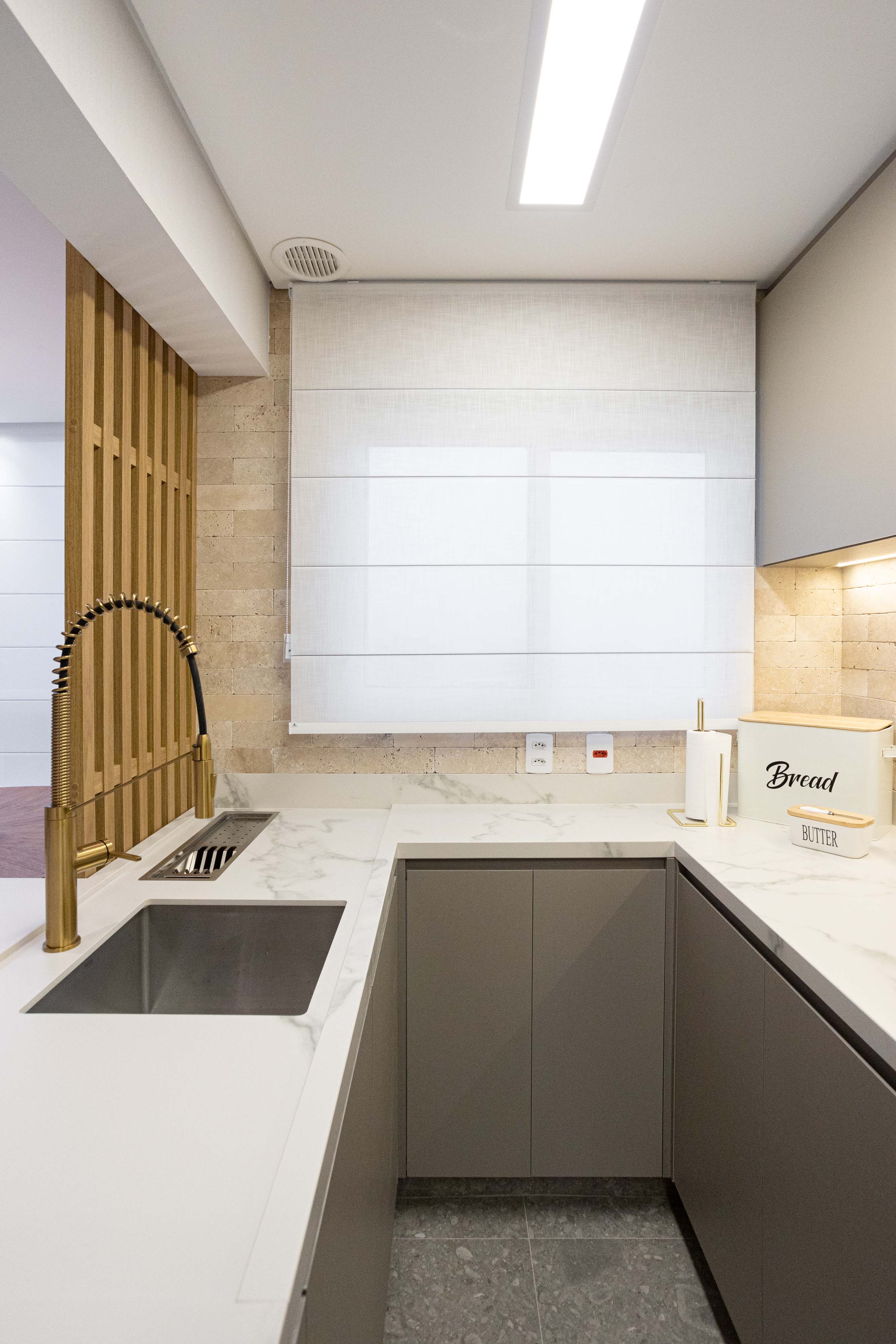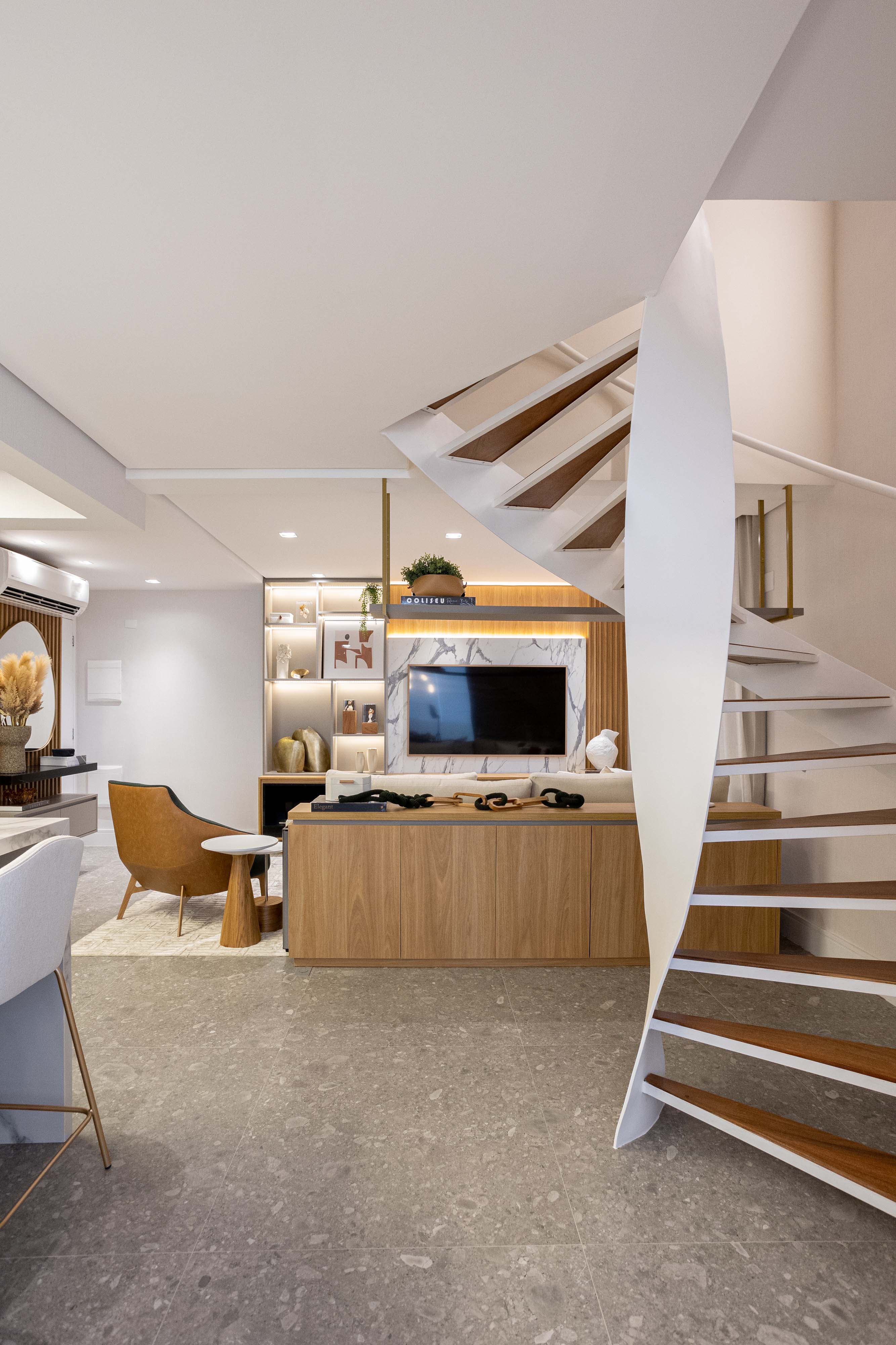 Reformamos esse apartamento moderno com toque clássico que fica na Bela Vista, próximo a Av. Paulista em SP. Essa obra teve 3 meses de duração e reformamos cozinha, área de serviço, salas, área gourmet, escada, banheiros e dormitórios.