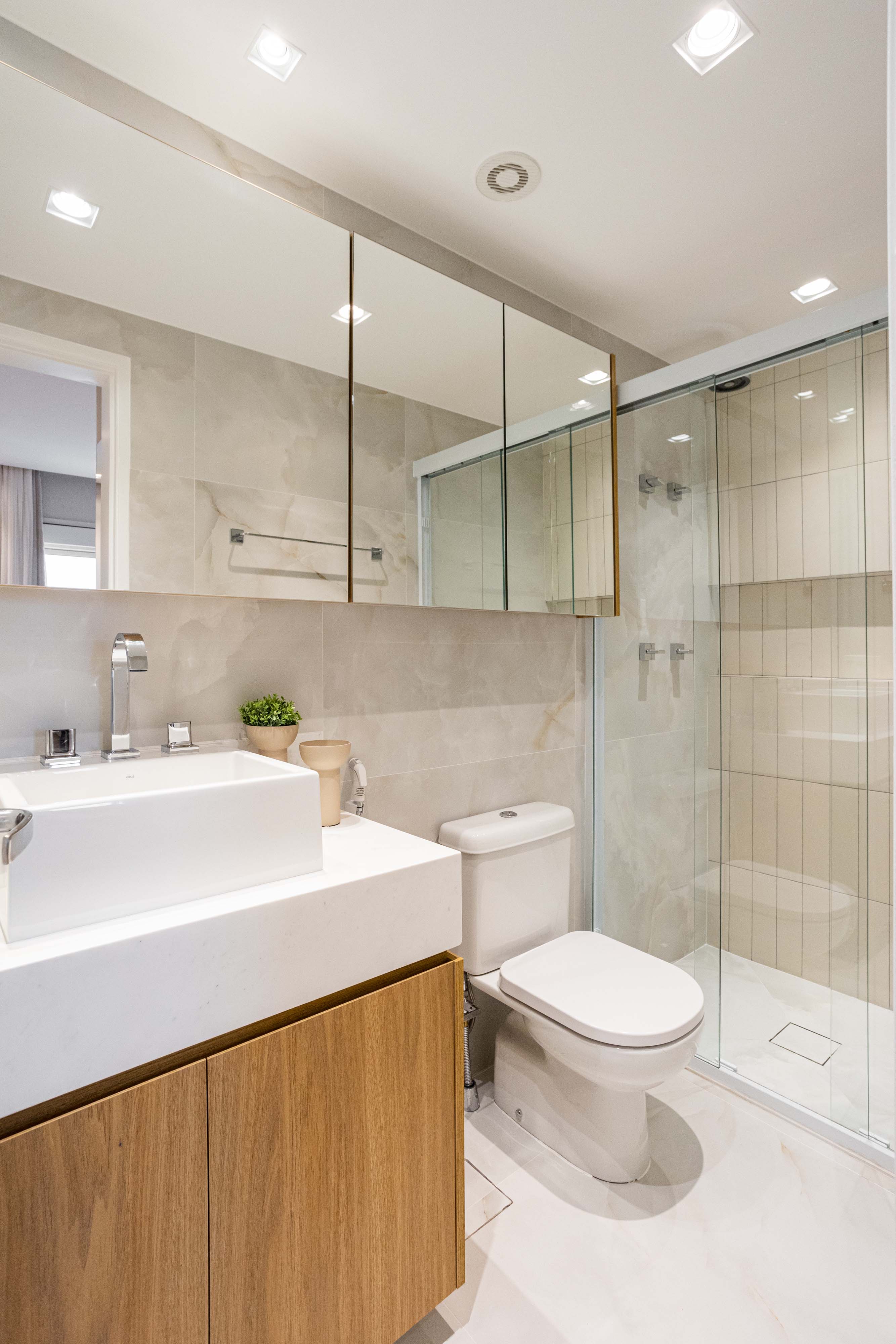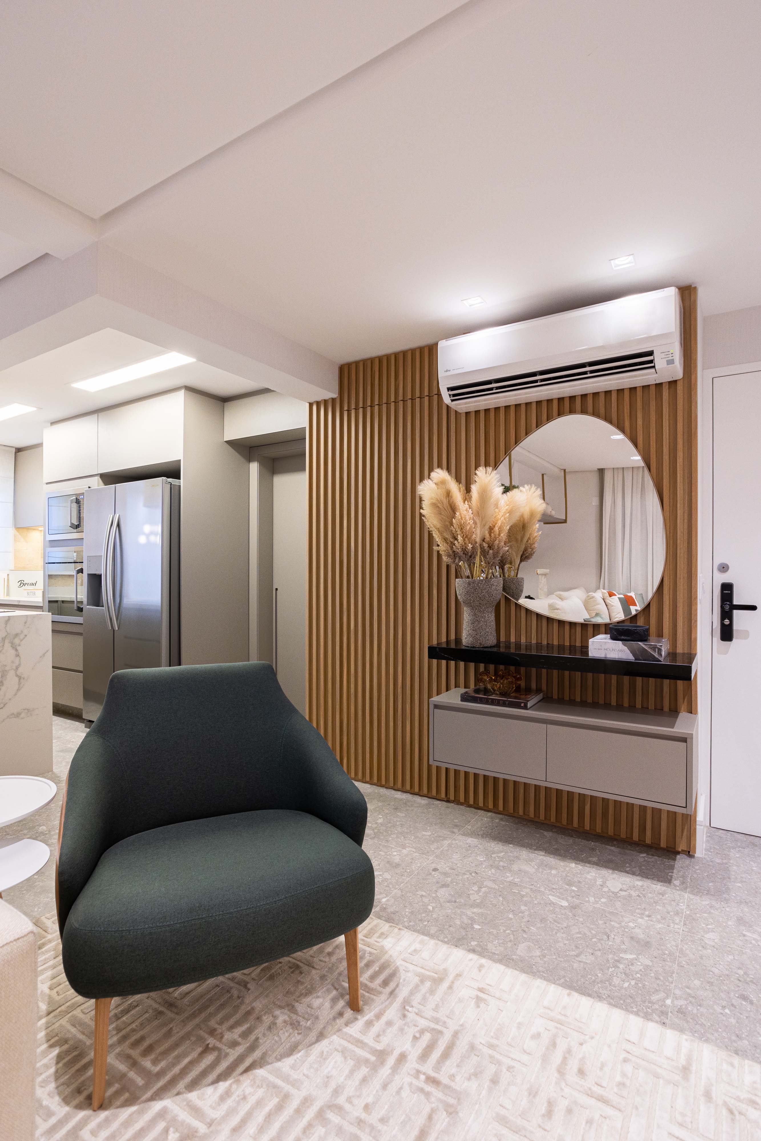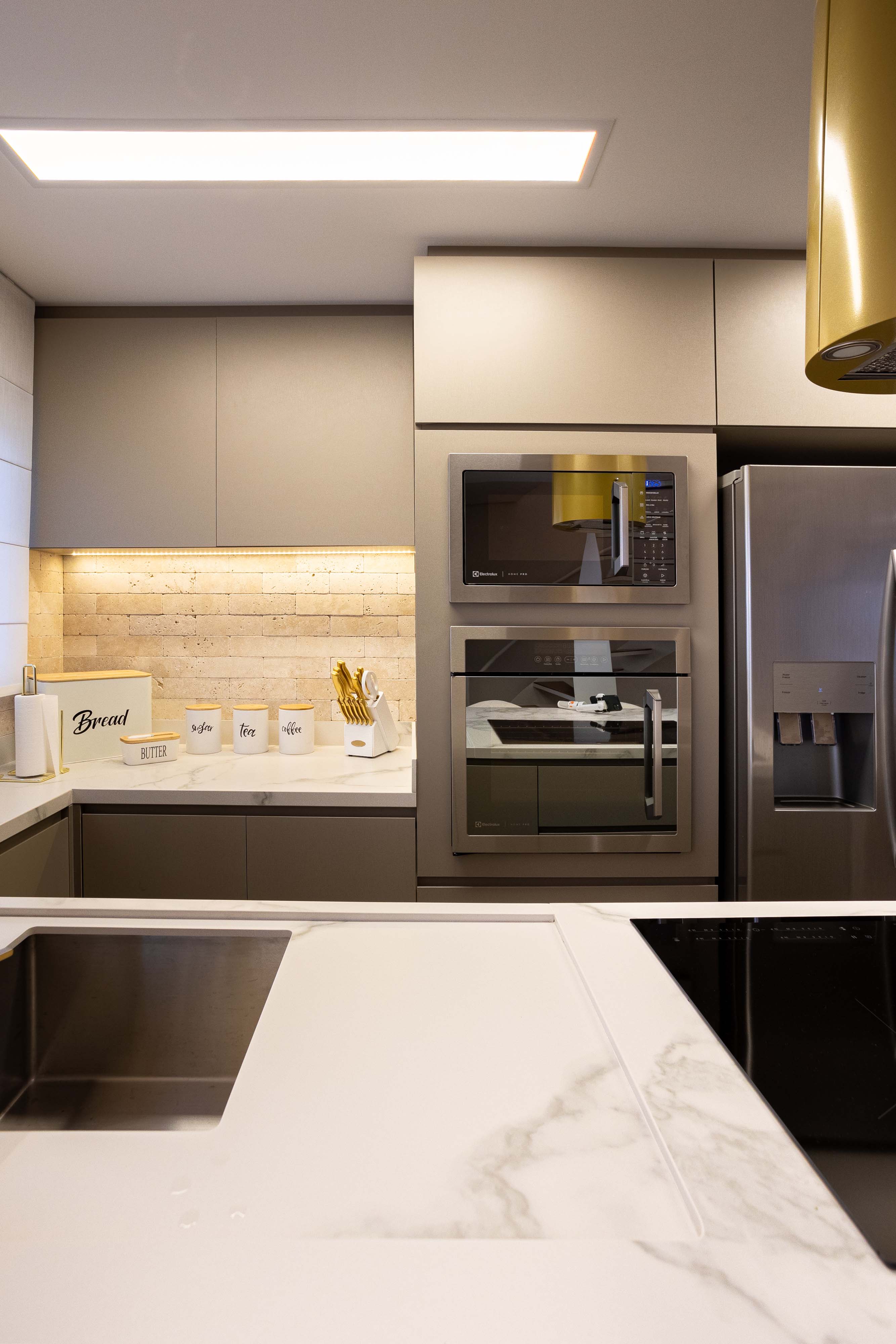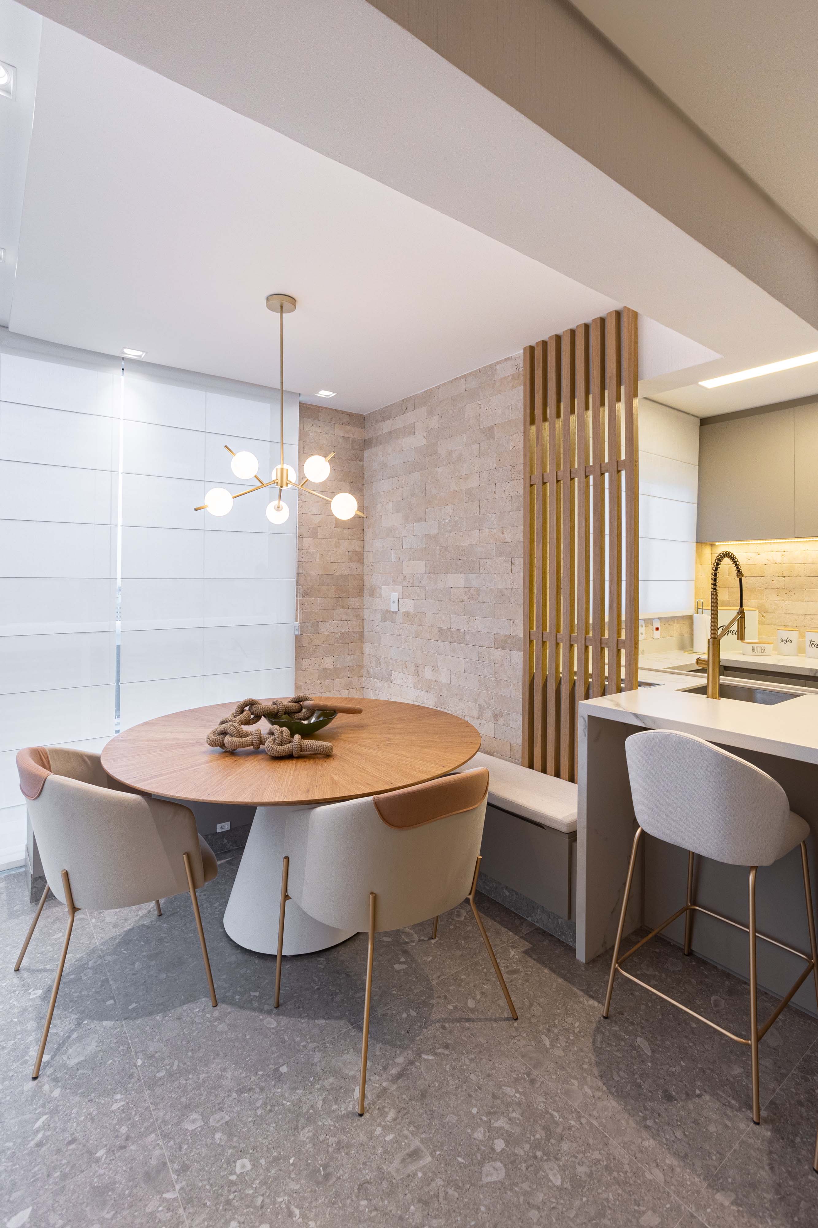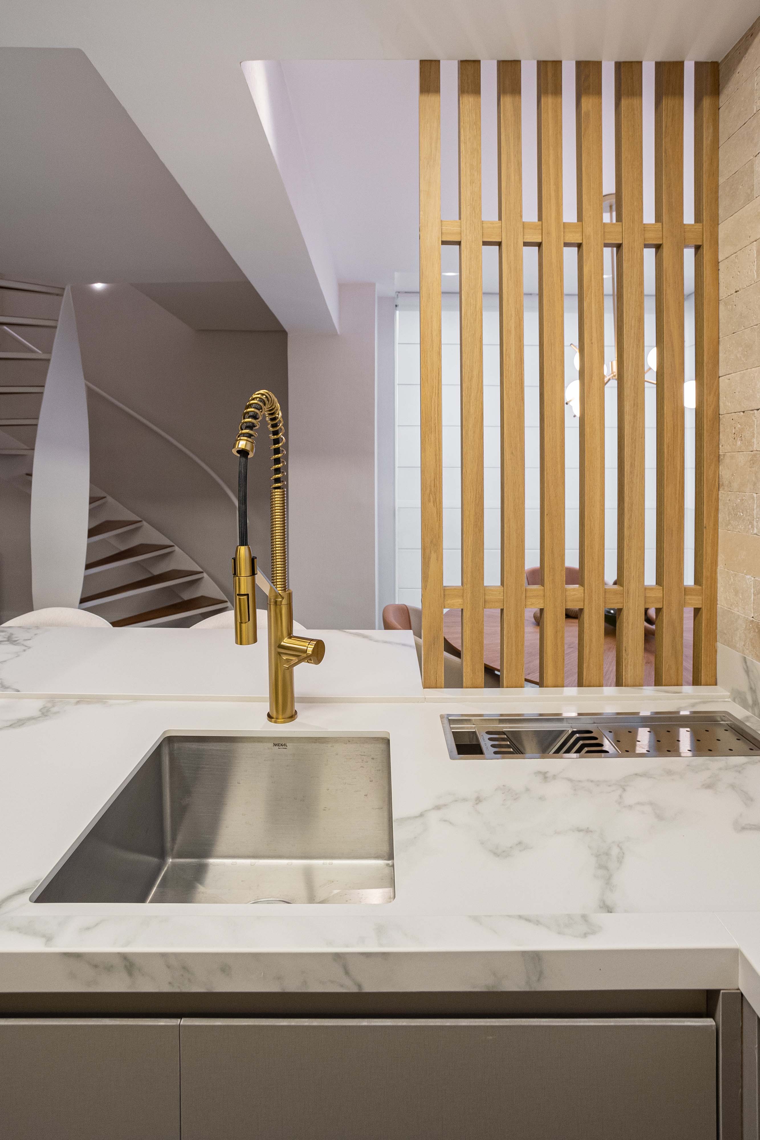 Reformamos esse apartamento moderno com toque clássico que fica na Bela Vista, próximo a Av. Paulista em SP. Essa obra teve 3 meses de duração e reformamos cozinha, área de serviço, salas, área gourmet, escada, banheiros e dormitórios.