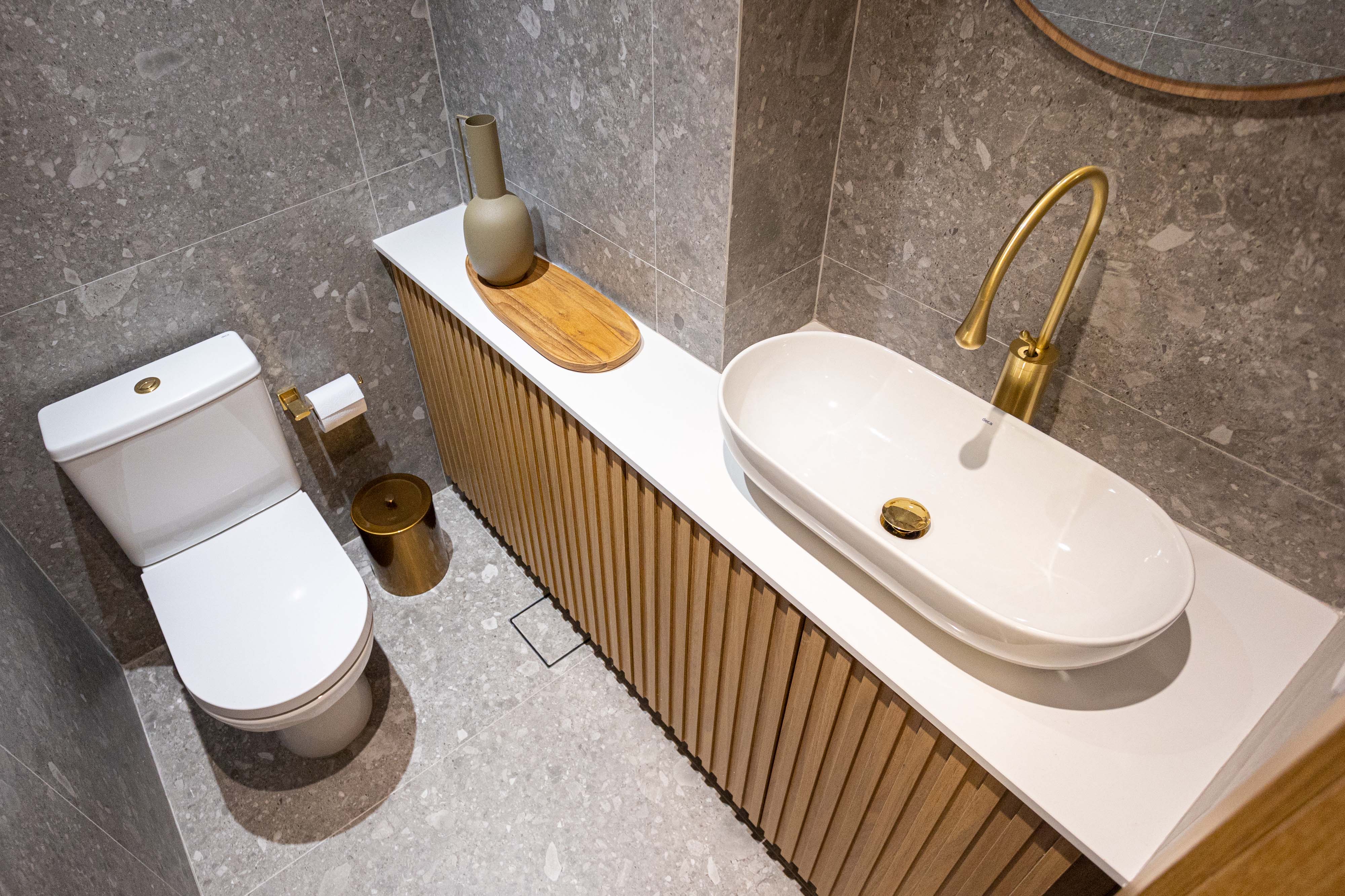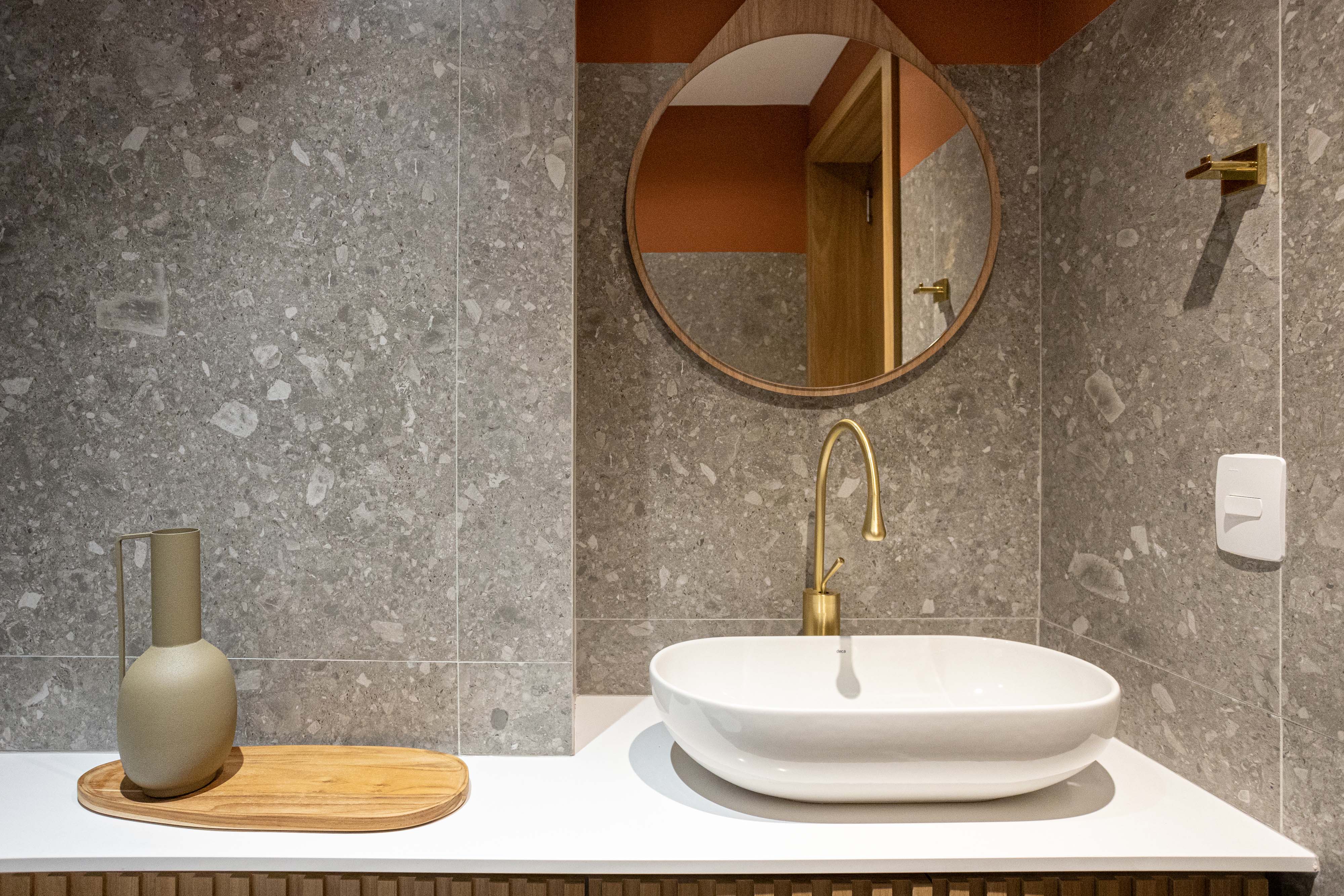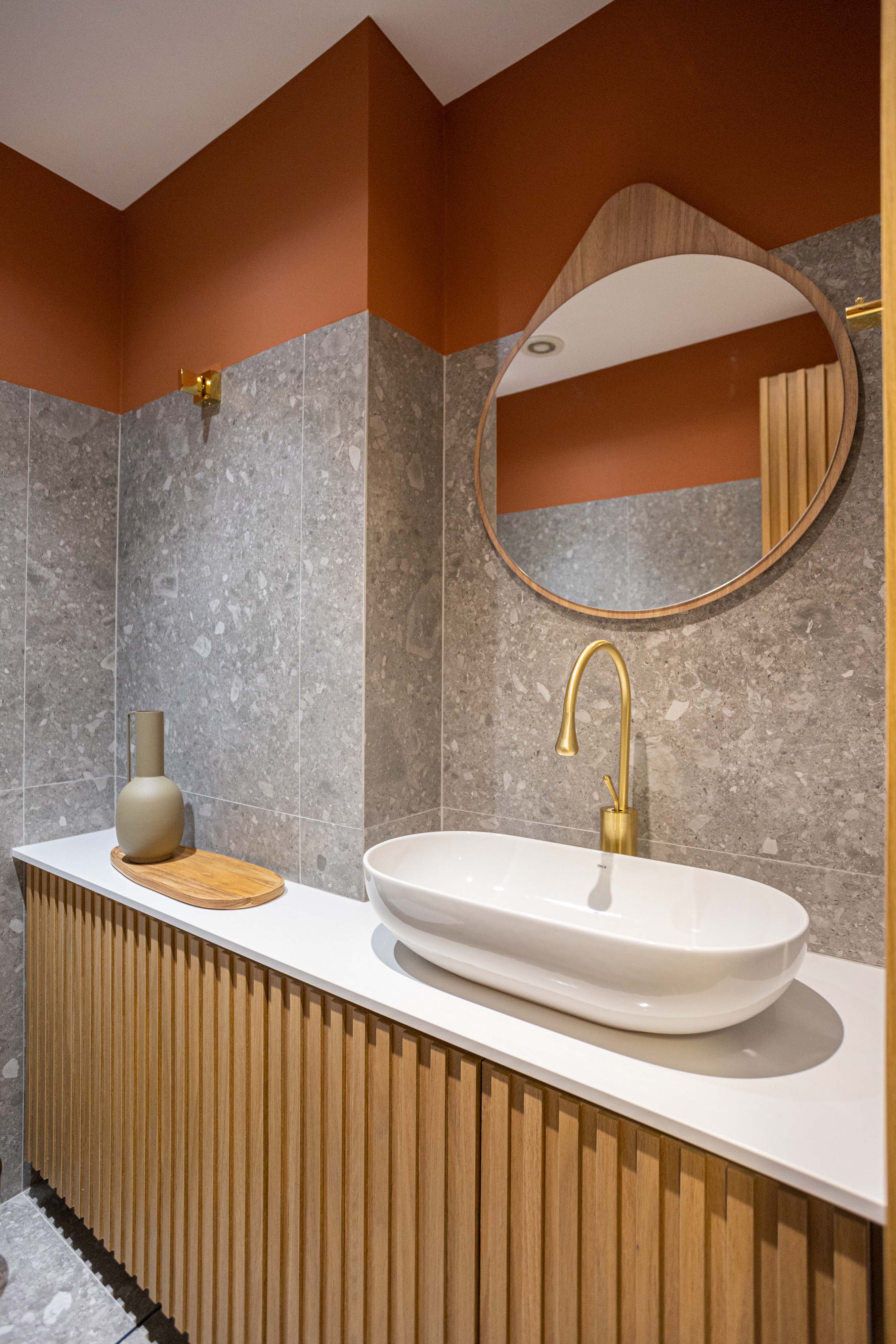 • Cor Tamarindo da Suvinil nas paredes do lavabo